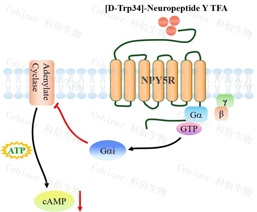神經(jīng)肽 Y(NPY)作為一種重要的神經(jīng)遞質(zhì),廣泛分布于脊椎動物的中樞神經(jīng)系統(tǒng)和 周圍神經(jīng)系統(tǒng)。通過與不同的亞型受體結(jié)合,NPY 激活信號轉(zhuǎn)導(dǎo)通路,從而調(diào)節(jié)攝食 、能 量平衡、焦慮、晝夜節(jié)律和其他生理過程。NPY 受體(NPYR)屬于 G 蛋白偶聯(lián)受體家族, 目前在哺乳動物中已鑒定出 5 種受體基因亞型,即 NPY1R、NPY2R、NPY4R、NPY5R 和 NPY6R。 NPY5R 主要響應(yīng)內(nèi)源性配體神經(jīng)肽 Y(NPY)、肽 YY(PYY)及胰腺多肽(PP), 通過偶聯(lián) Gi/o 蛋白抑制腺苷酸環(huán)化酶活性、降低細(xì)胞內(nèi) cAMP 水平,同時激活 MAPK/ ERK 通路并動員鈣離子信號,在下丘腦攝食中樞、情緒調(diào)節(jié)環(huán)路及能量代謝網(wǎng)絡(luò)中發(fā)揮核 心作用,其異?;罨c肥胖、糖尿病及情緒障礙密切相關(guān)。 |