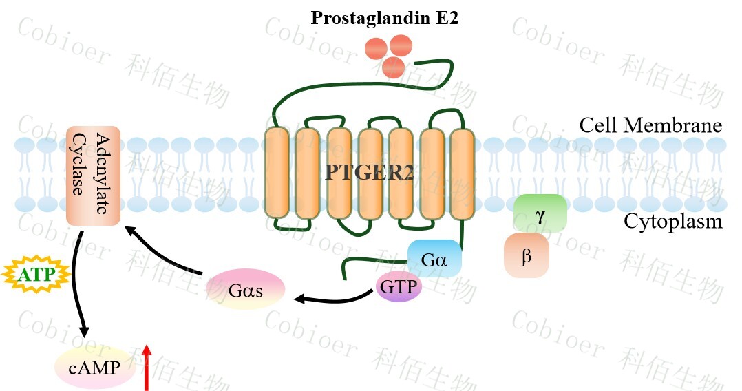 PTGER2(前列腺素 E2 受體 2 型)屬于前列腺素類受體家族,廣泛分布于皮膚黏膜血 管、免疫細(xì)胞(如巨噬細(xì)胞、T 細(xì)胞)、子宮/氣道平滑肌及中樞神經(jīng)系統(tǒng),其內(nèi)源性配體 主要為前列腺素 E2(PGE2);該受體通過偶聯(lián) Gq 蛋白(升高胞內(nèi)鈣離子誘導(dǎo)平滑肌收縮) 和 Gi 蛋白(抑制 cAMP 并激活 MAPK 通路)介導(dǎo)雙重信號,參與血管擴張、痛覺敏化、 免疫調(diào)控及平滑肌收縮等生理過程,其異常激活與銀屑病、哮喘、類風(fēng)濕關(guān)節(jié)炎等炎癥性 疾病,以及 腫瘤免疫逃逸(如結(jié)直腸癌)和神經(jīng)炎癥(如阿爾茨海默?。?密切相關(guān),成為 抗炎與腫瘤治療的重要靶點。 |