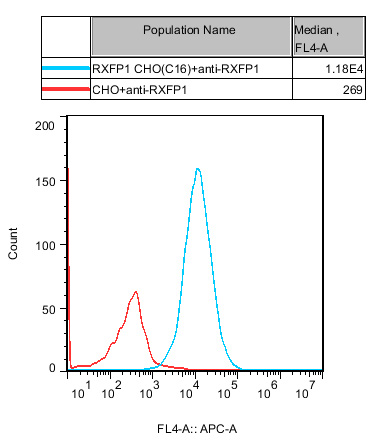 V. Representative Data![]() Figure 1. Recombinant RXFP1 CHO stably expressing RXFP1. ![]() Figure 2. HTRF CAMP Assay with RXFP1 CHO( C16). |